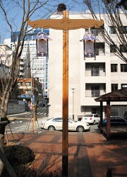재질 및 규격:통나무 Ø200 (상부 Ø130)